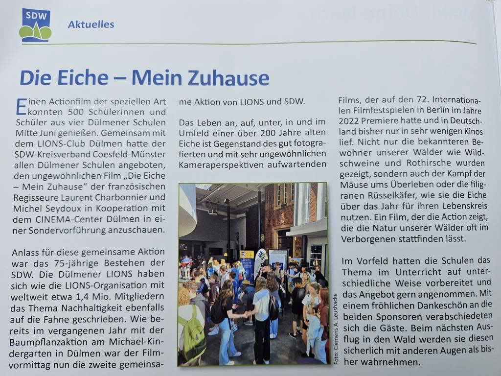 Zu einer Sondervorführung des Films "Die Eiche lud der Lions Club Dülmen Schülerinnen und Schüler aus vier Dülmener Schulen ins CINEMA Dülmen ein.
