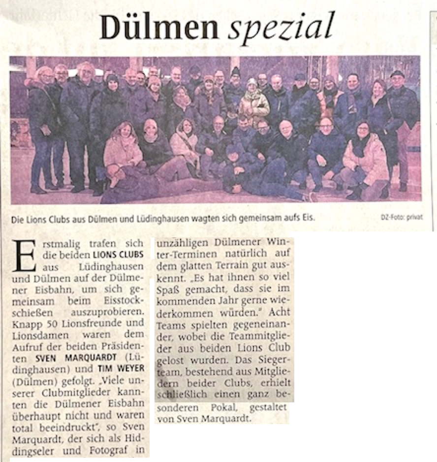 Zu einer gemeinsamen Aktion auf der Eisbahn in Dülmen trafen sich die Lionsfreunde aus Dülmen und Lüdinghausen am 13. Dezember.