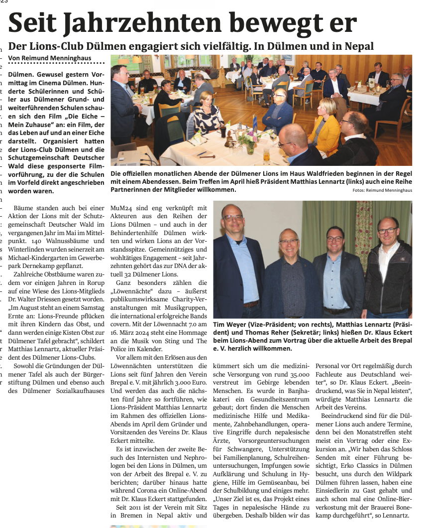 Pressebericht über die Arbeit des Lions Club Dülmen